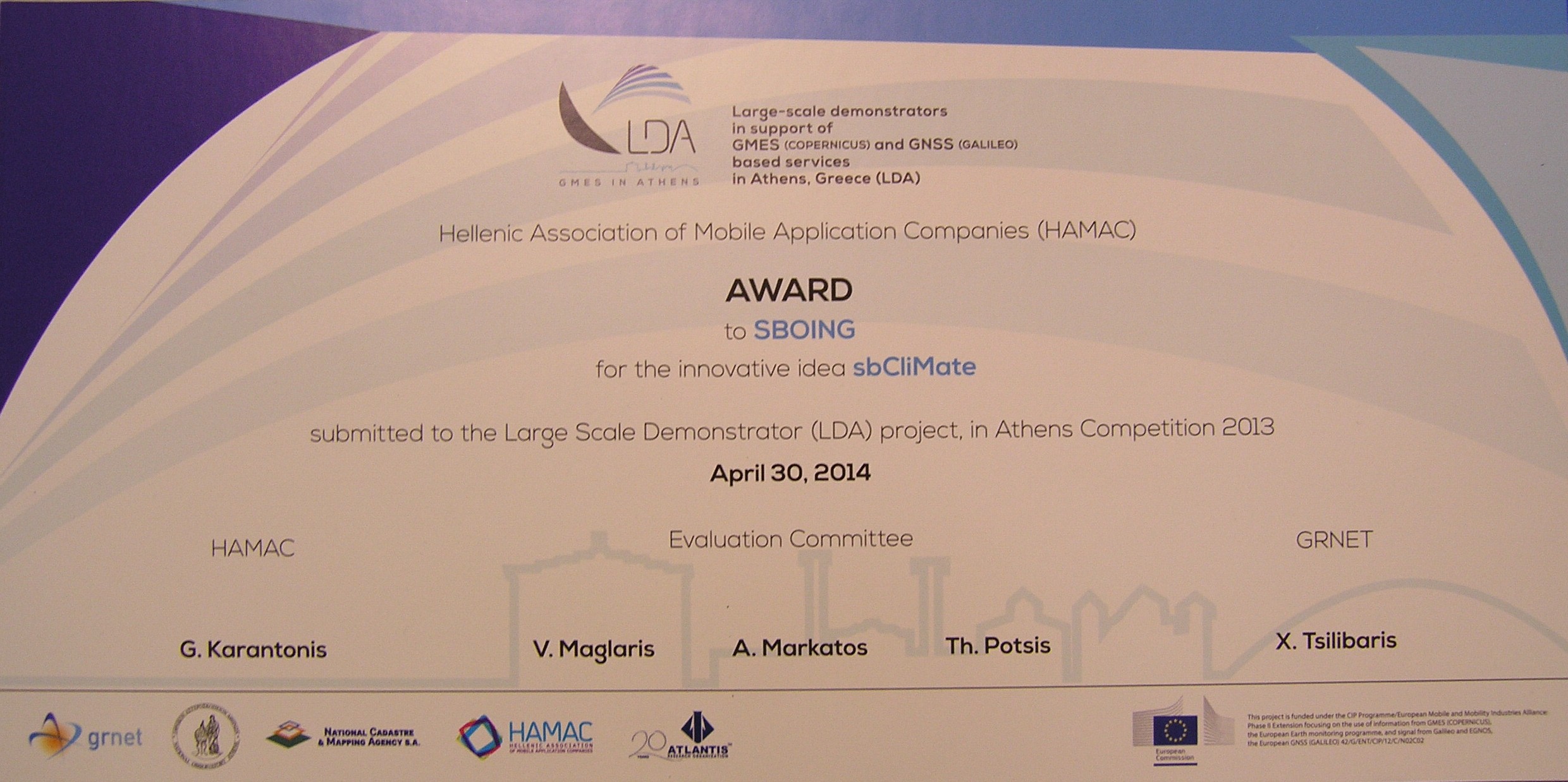 Απονεμήθηκε στη SBOING το βραβείο των 15.000 ευρώ του διαγωνισμού LDA, για την εφαρμογή sbCliMate, που είναι πρόσθετο του πλοηγού sbNavi™ της εταιρίας
